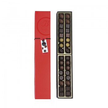 Inside the elegant Bodrato tasting boxes we find two very sweet layers of chocolates, one of Boeri individually wrapped so as not to lose their fragrance, and the other of stuffed pralines, the highest expression of the high-quality Piedmontese artisan chocolate.