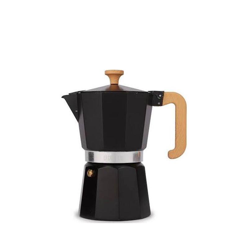 The original, unique coffee maker with the unmistakeable man with the moustache and the patented safety valve.