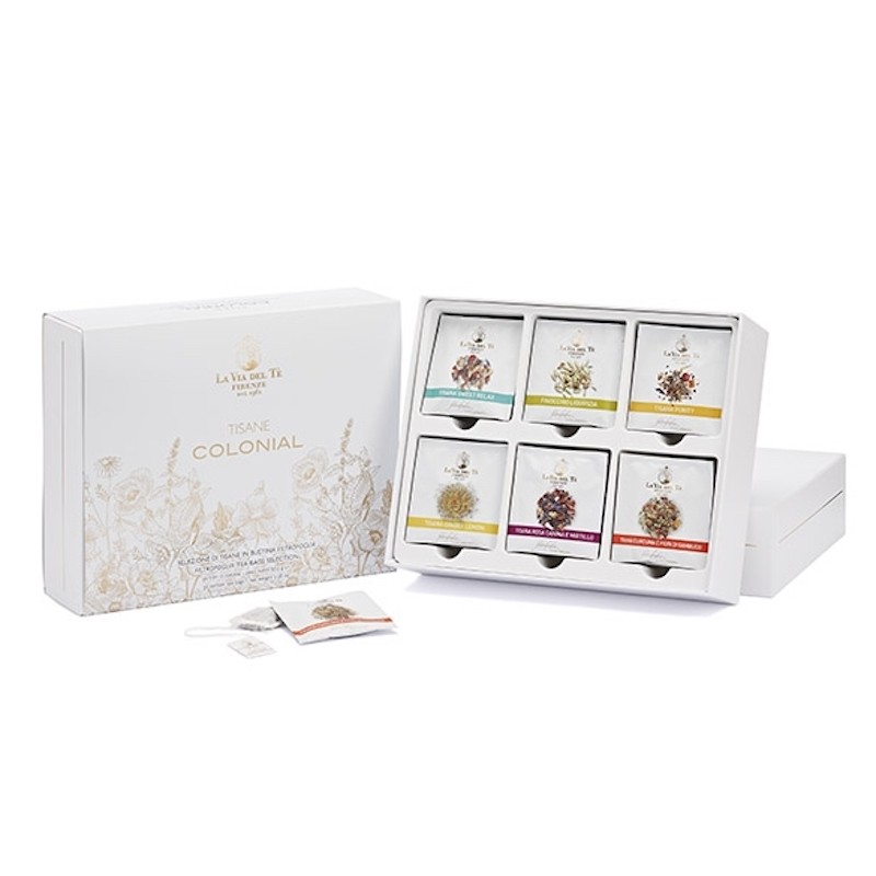A gift box for the herbal tea lover: six assorted flavors. The herbal tea collection is composed by: