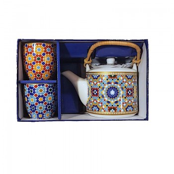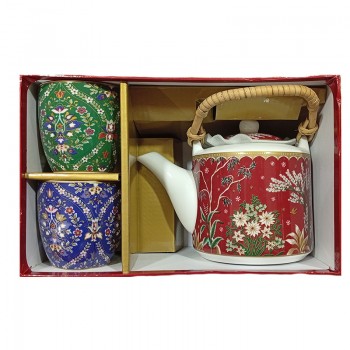 Porcelan teapot 600ml with metal infuser and 2 cups 160ml