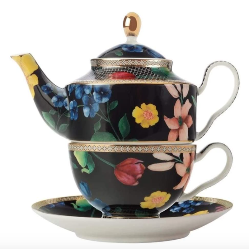 Made from premium bone china, the compact design features a miniature teapot that neatly stacks inside the wide-rimmed teacup. Immersing yourself in the whimsical world of Alice, scenes from the Mad Hatter's tea party grace the sides, showcasing intricate illustrations inspired by Sir John Tenniel's renowned work. Quintessentially British, each piece is then uplifted with pastel colours and the V&A's signature floral.