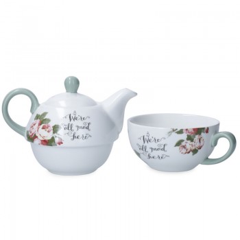 Made from premium bone china, the compact design features a miniature teapot that neatly stacks inside the wide-rimmed teacup. Immersing yourself in the whimsical world of Alice, scenes from the Mad Hatter's tea party grace the sides, showcasing intricate illustrations inspired by Sir John Tenniel's renowned work. Quintessentially British, each piece is then uplifted with pastel colours and the V&A's signature floral.