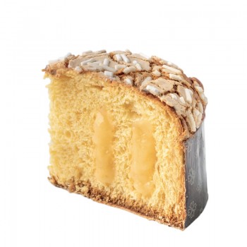 Tutto il profumo dei limoni di Sicilia in una leggera crema artigianale dal gusto fresco e delicato. Una farcitura che arricchisce il tradizionale impasto, a base di lievito madre, ricoperto di glassa di con amaretto e zucchero in granella.
