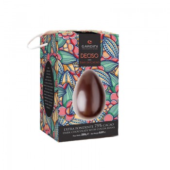 L’Uovo extra fondente Deciso nasce dall'unione tra il cioccolato extra fondente 75% e le fave di cacao.