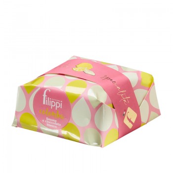 La classica Filippi è la colomba per antonomasia, sintesi autentica di tradizione e genuinità degli ingredienti. Burro, farina, uova e bacche di vaniglia sono sapientemente miscelati a formare una trama glutinica irregolare tipica della lievitazione naturale. Cubetti di scorzone d'arancia candita arricchiscono e profumano un impasto soffice e dal gusto delicato. La glassatura è ricca e croccante, ottenuta miscelando pregiate mandorle “Prima Bari”, zucchero ed albume.