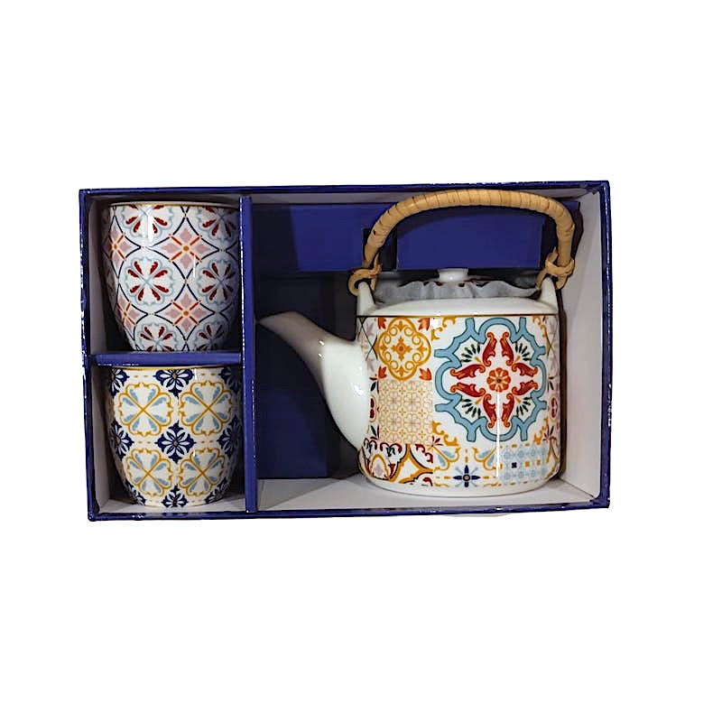 Teiera (con filtro in metallo) da 600 ml con 2 bicchierini in porcellana.